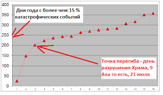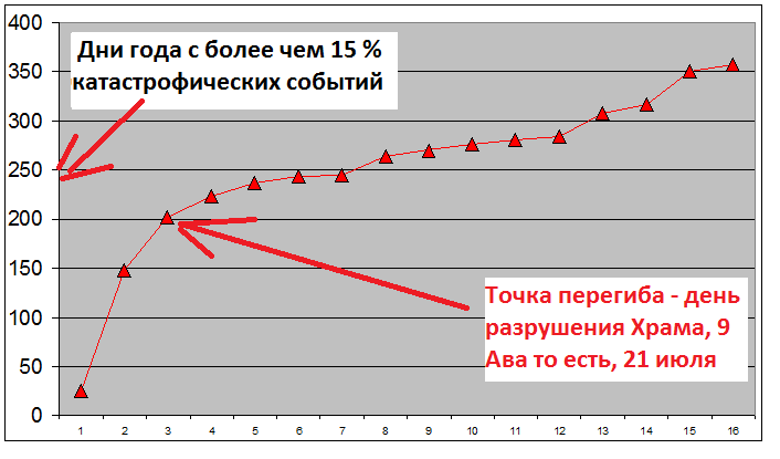 И если отобрать дни, содержащие катастрофических свидетельств более 15% от общего числа сведений вообще, то мы увидим точку перегиба, после которой и развернулась подлинная катастрофа прошлого.