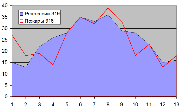 Понятно, что есть корреляции и между грандиозными пожарами и репрессиями.