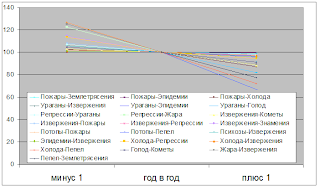 Есть исключения (верхние части "крыльев" этой "бабочки"), и они крайне важны, поскольку указывают на те катаклизмы, что стремятся произойти годом раньше или годом позже. Становится видна их очередность.